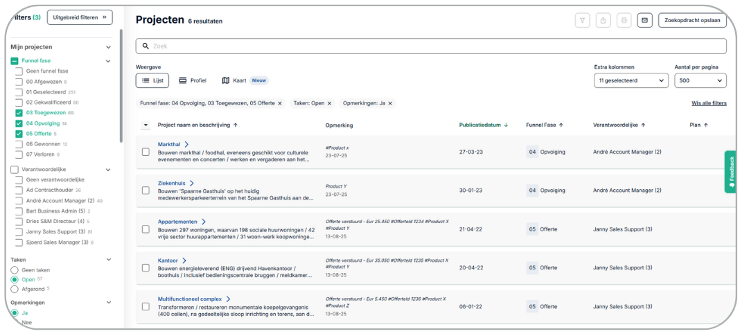- Leadkwalificatie – snel bepalen welke projecten écht interessant zijn
