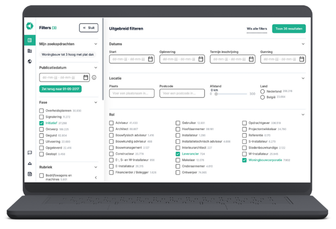 • Zo kun je meteen effectief aan de slag met het vinden van relevante bouwprojecten in jouw markt.